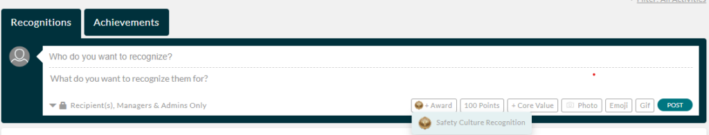 - Click on the “Awards” button and select Safety Culture Recognition